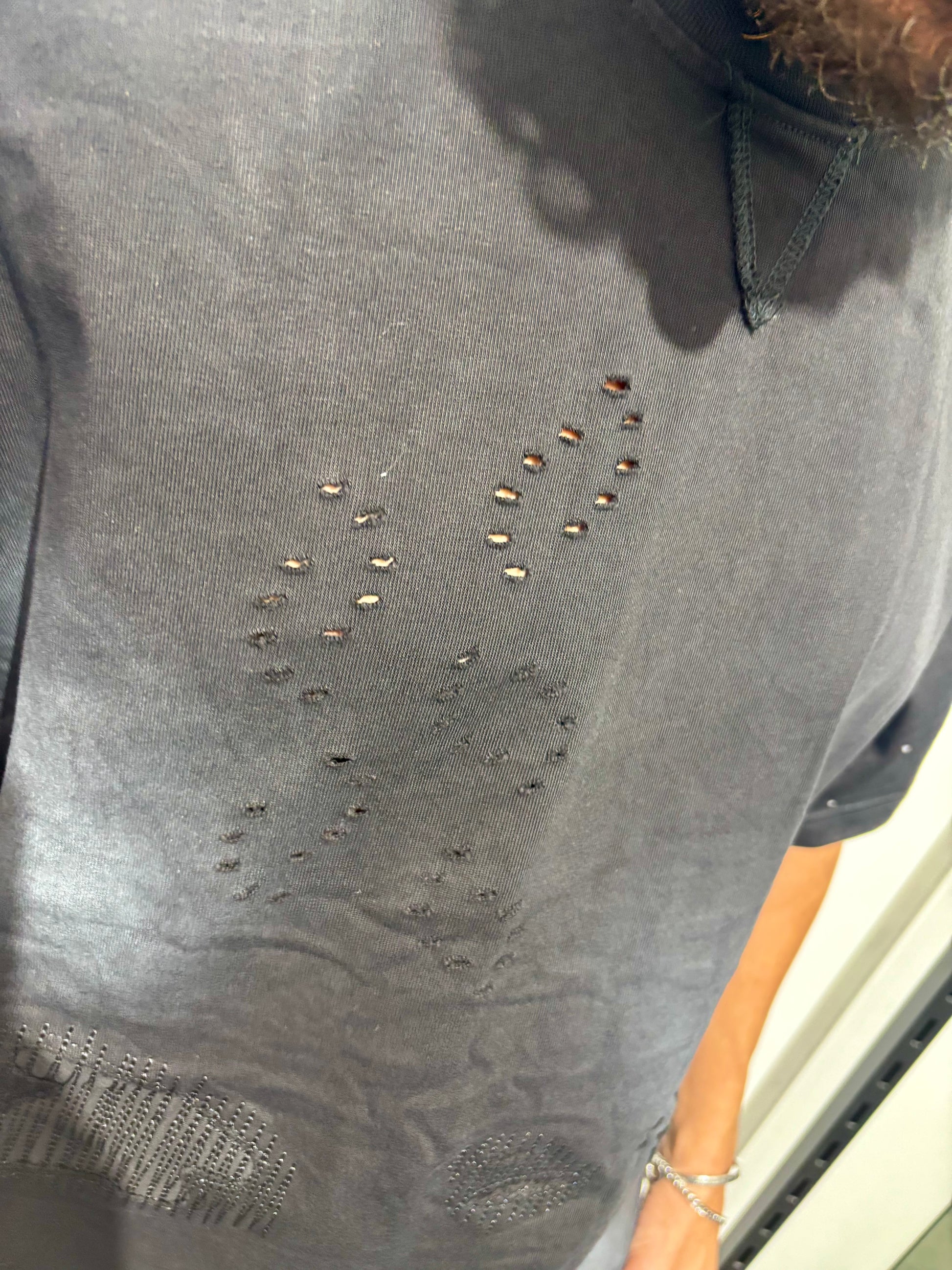 T-shirt lavata con ricami termo-saldati internamente con rottura&pittura